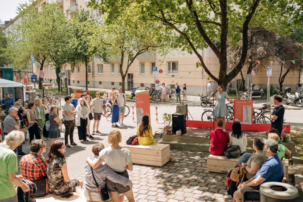 Letztes Wochenende, am 17. Juni 2023, startete unser Projekt aqt – autoreduzierte Quartiere für eine lebenswerte Stadt in der südlichen Au. Gemeinsam mit circa 800 Anwohnerinnen und Anwohnern sowie Passantinnen und Passanten haben wir den Auftakt den ganzen Samstag lang gefeiert und wurden von lokalen Musikerinnen und Musiker sowie Künstlerinnen und Künstler begleitet.