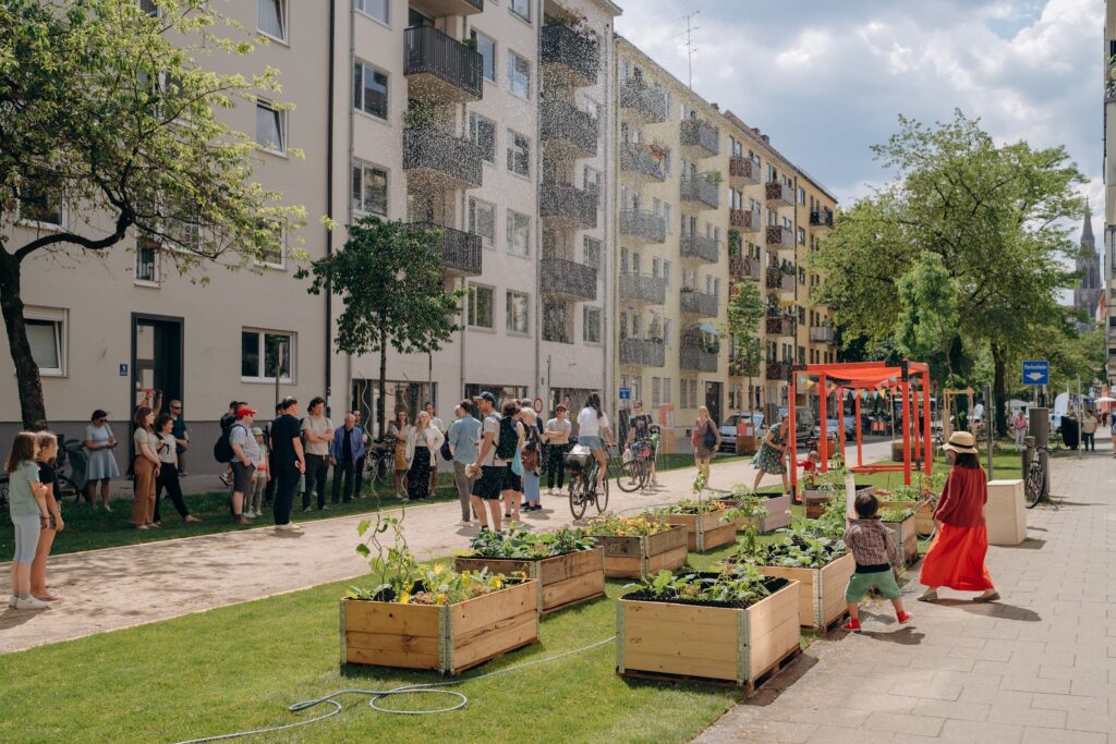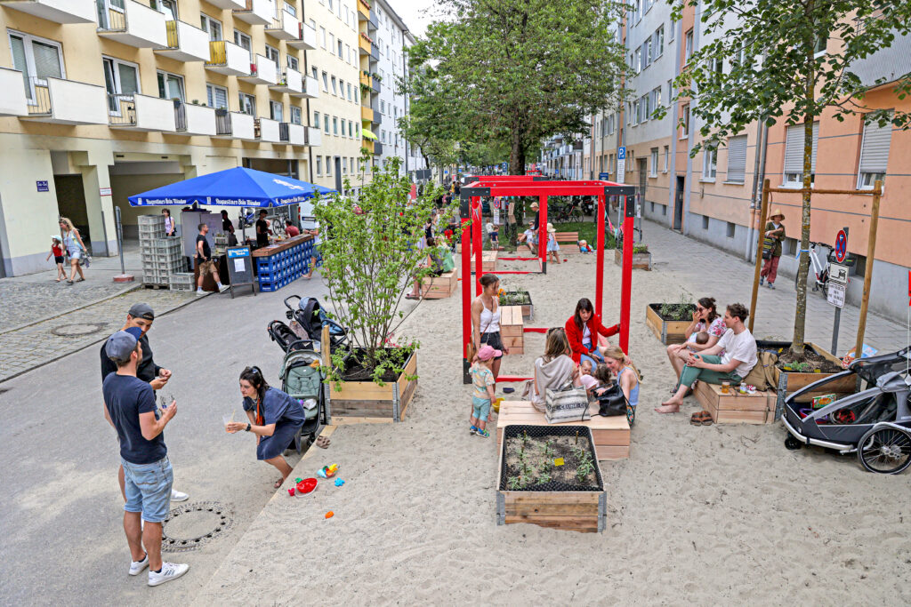 Auf dem Schlotthauer- und Edlingerplatz sowie dazwischen auf der Kolumbusstraße konnten die Besucherinnen und Besucher einen autoreduzierten und umgenutzten Raum erleben. Mit Wiese und Strand statt Asphalt, Picknickdecken und Bierbänken statt Parkplätzen, konnten sich die Menschen an diesem Fest frei im öffentlichen Raum austoben und sicher (ohne den üblichen Autoverkehr) zusammenkommen. Am Samstag sowie über die kommenden 5 Monate können die Anwohner*innen mit Urban Gardening, Hochbeete und Schanigärten Nachhaltigkeit im Quartier erleben und ausüben, sowie sich an den diversen Erholungsplätzen auch mal im öffentlichen Raum ausruhen.
