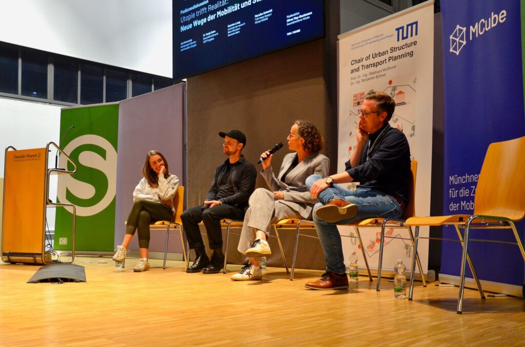 Unter dem Titel „Utopie trifft Realität: neue Wege der Mobilität und Stadtgestaltung“ haben wir am 18.09.2025 im Deutschen Museum Verkehrszentrum gemeinsam mit rund 100 Gästen diskutiert, wie Visionen unsere Städte und Mobilität der Zukunft prägen können.