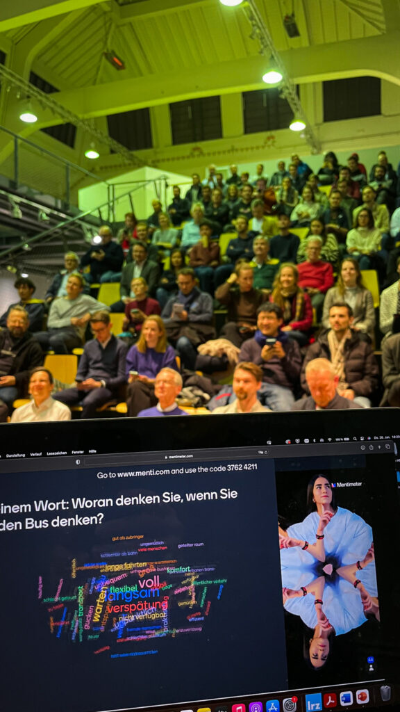 Per Mentimeter-Umfrage wurde zu Beginn abgefragt, was den Teilnehmenden spontan zum Thema Bus einfällt – das Ergebnis: „voll, unpünktlich, eng, unbequem“. Ein klarer Auftrag an alle Beteiligten: Das Image muss sich radikal verändern.