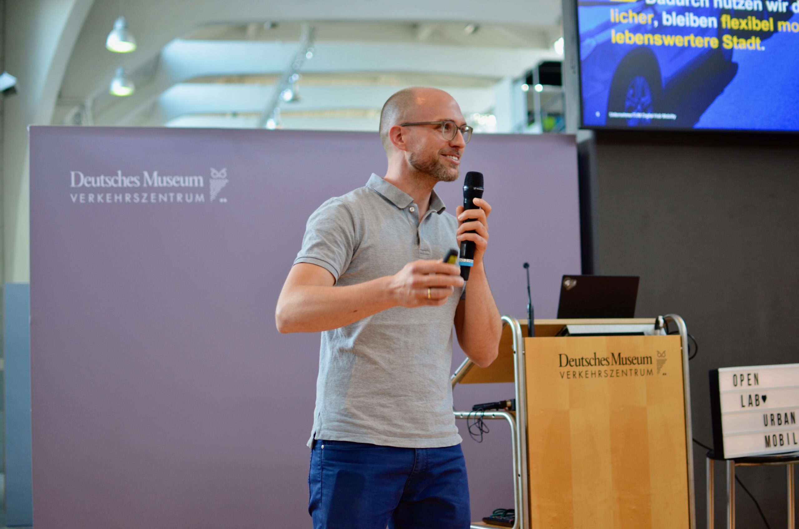 Dr. Bernhard Kalkbrenner, Senior Manager Digital Hub Mobility der UnternehmerTUM, gab einen Einblick in das “Hausflotte” Projekt der UnternehmerTUM. Der Fokus: Sharing in Hausgemeinschaften. Hier werden im Gegensatz zu ComfficientShare bereits genutzte Privatautos für peer-to-peer Sharing von Teilnehmerinnen und Teilnehmern innerhalb Wohngemeinschaften zur Verfügung gestellt. Dr. Bernhard Kalkbrenner hat deutlich gemacht, dass eine Skalierung mit einem sich selbst tragendem Geschäftsmodell momentan noch schwierig ist und auch, dass das Mindset der Öffentlichkeit gegenüber Sharing vs. Privatauto noch schwach ist. Mehr zum Hausflotten-Projekt hier.